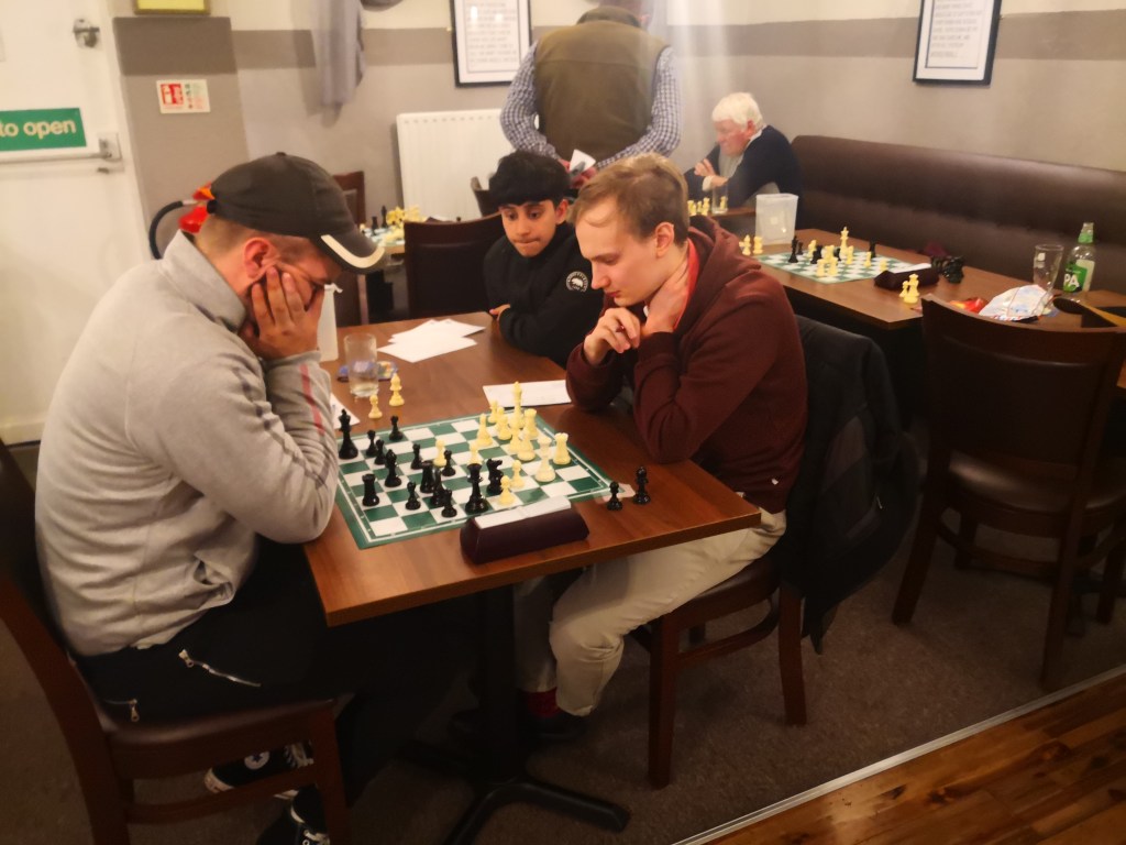 In the decisive game of the match, our captain Oskar had to face 130 points higher rated opponent. The leader of our second team started with a queen’s pawn opening which after a couple of moves transposed into the Steinitz variation of the French defense. The players continued their development as expected, with Anstey 2 captain gaining space in the centre while the home team player started an attack on the Q-side. Following opening of the c-file, the players started a positional battle with their rooks staring at each other and keeping the pressure. After exchanging a set of bishops, followed by a rook exchange, the players continued their development and further exchanged a set of minor pieces while maintaining the fight for the open c-file. Following another rook exchange, our teammate found himself unfortunate to blunder a pawn while being questioned about his rating, with his opponent evaluating him as 1500 player. Left with nothing to lose, Oskar turned his attention to Black’s king and loaded an attack on the K-side. After pushing the g-pawn all the way until the seventh rank, our teammate did the smart thing in exchanging the rooks and creating immense pressure on the K-side. Our second team captain loaded a series of checks, creating havoc on the K-side and exchanging queens after picking up a couple of pawns. The race between the white g-pawn and the black b-pawn started and led to both pawns queening with White to move. Another blast of checks followed, but Oskar missed a perpetual check by his opponent and after a couple of repeats, the players agreed to a draw. A missed chance for our teammate who nevertheless appears to be in great form.