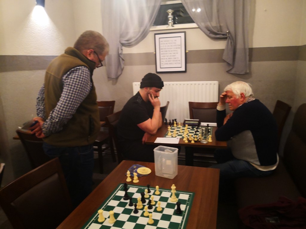 The home team welcomed us in a quite spacious venue and we were impressed by the number and the young age of both their team players and casual chess enthusiast who decided to have a go at playing chess on Wednesday evening. As usual, our second team was at the venue 7:30 sharp with the players eager to prove themselves against a solid team outrating them by a margin. Although scheduled to play first board after the rating change, Boris decided that he does not have the necessary “cojones” for the task and Mike stepped up in an effort to outplay the highest rated player from both teams.