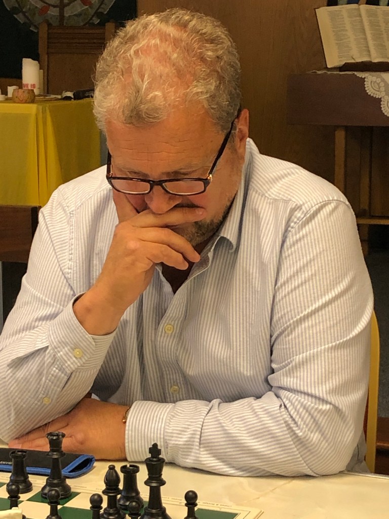 With the black pieces, Mike was able to equalise easily and with Neil having some pressure on the Kingside and trying to prize Mike open, it was Mike himself who made the breakthrough with an attack down the h file, with Neil’s King in the centre, Mike forced a resignation with a strong attack in the centre of the board.
