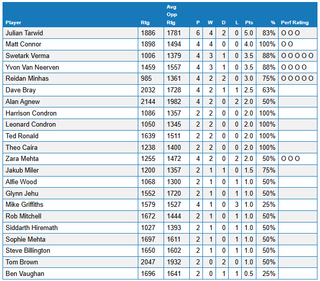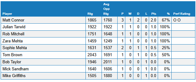 Momentum kept rolling as the third team claimed the scalp of Wigston 2, with standout performances across the board. The moment of the match? Nick’s brilliant draw against 2000+ rated Andy Morley, a result that absolutely belongs in the “frame it and hang it on the wall” category.