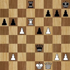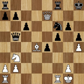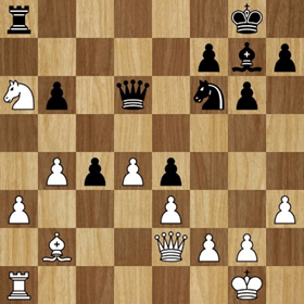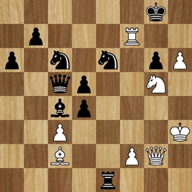 John Robinson’s game against Dave Walker on board 2 was the first to finish and immediately put the home team on the back foot. Dave, with black, had equalised out of the opening and countered John’s queenside castling and kingside expansion with his own queenside attack leaving his king in the centre. John’s attack lost momentum and he went defensive before Dave made a brilliant knight sacrifice: