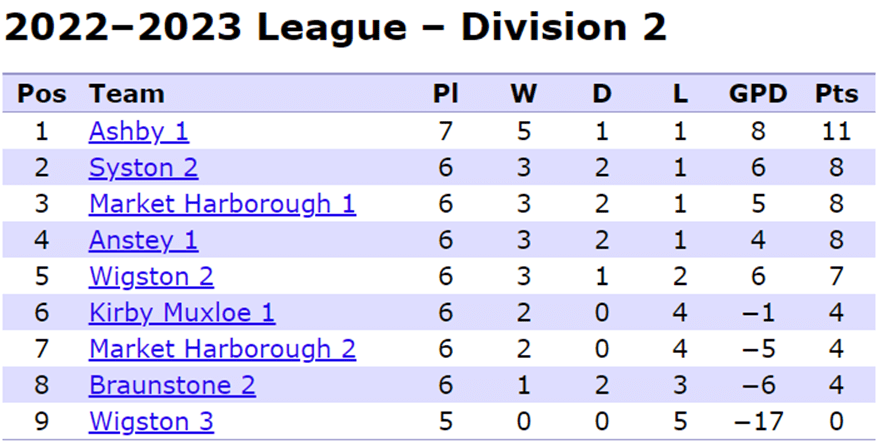 Anstey remain 3rd in the division but are now only 2 points ahead of Braunstone who have a game in hand, yikes: