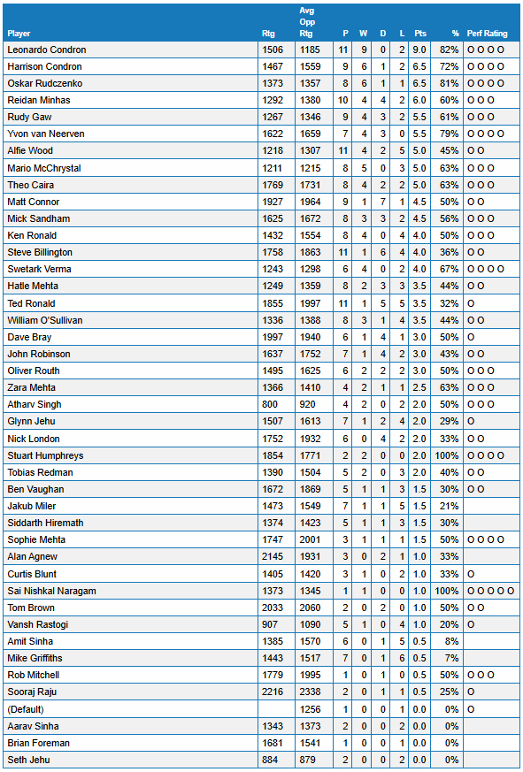1. Anstey 7 vs Ashby 5 Result: 5.5 – 1.5